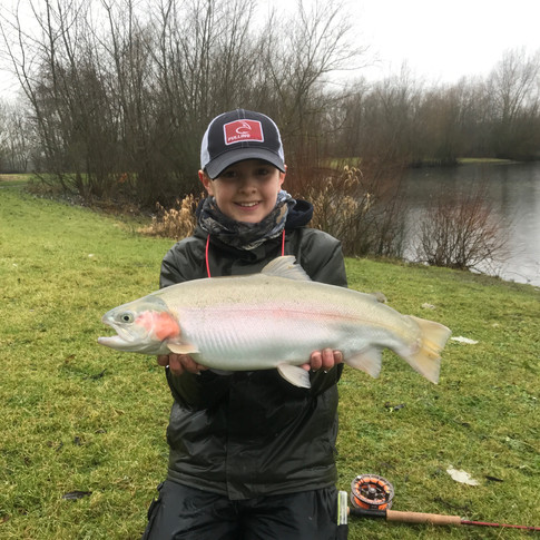 Broke my personal best for a Blue Trout at Haywards Farm today in the snow and rain. Managed to land 22 fish in total (17 Rainbow, 1 Brown and 4 Blue). The biggest Blue weighed in at 8 lbs.